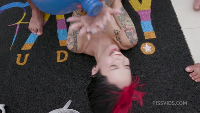 Sexy Latina Queen Kimi Drink Huge Bottle Of Piss Then Enjoys Some Intense DAP 0% Pussy With 4 Big Cocks Rimming And Footjod